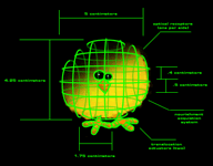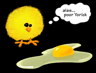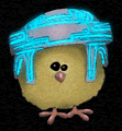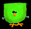 Tehrasha (a regular on the MacMAME Message Board) joked that I should "build a trackball assembly out of an undrilled bowling ball and two rolling pins." Well, that's just plain silly, because obviously it would take three rolling pins. But I was so taken with the lunacy of the idea, I'm actually going to try and build one. It's gonna be a brute, hence the name: the Cheep Monster. (And you thought the trackball on Atari Football pinched your hands!) Originally, I drew up a slightly different version of Cheep as a monster for this project's logo, then decided it didn't quite fit with the rest of them, and made the "fluffy Frankenstein" version. But here 's the original anyway, for the curious. |